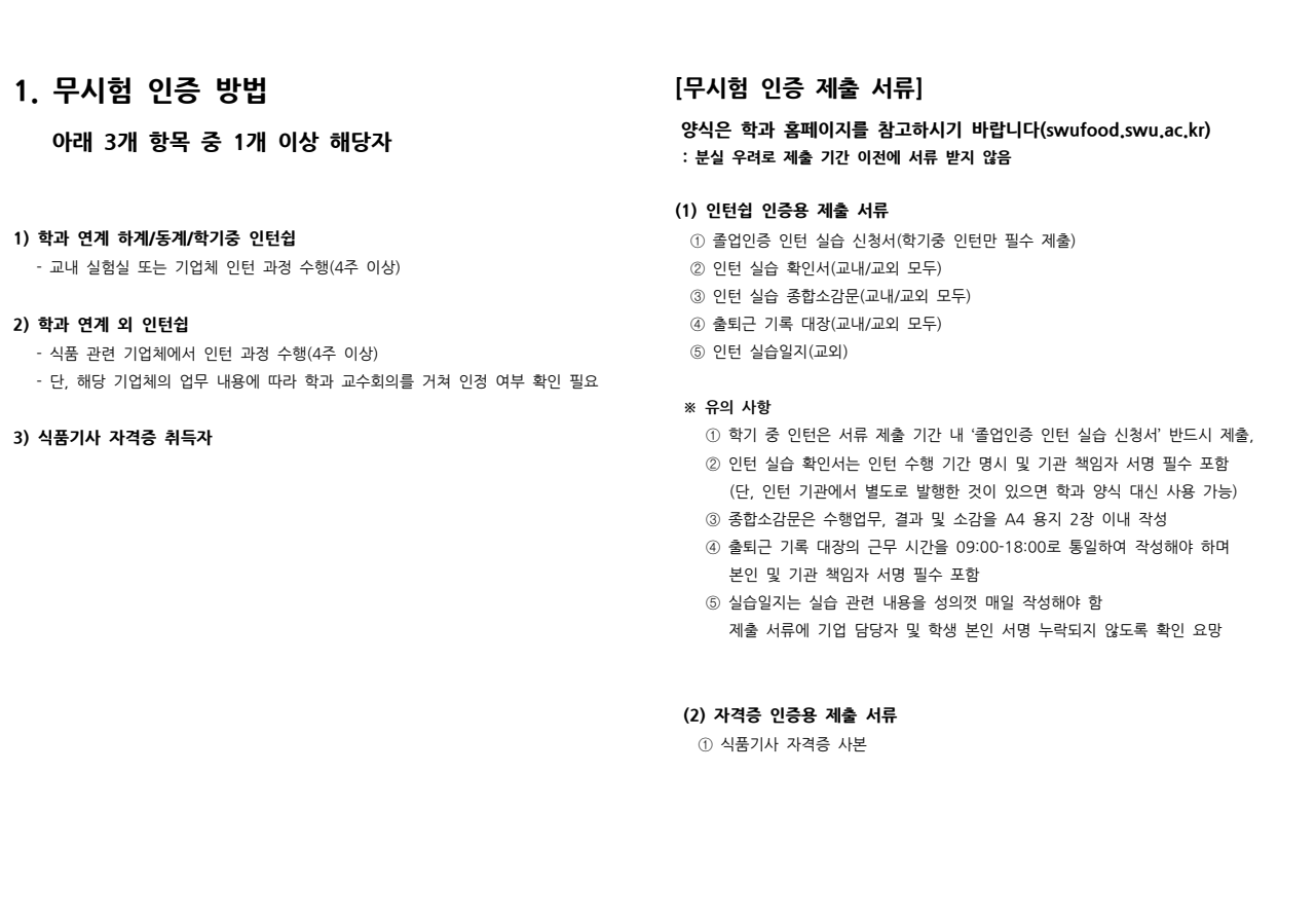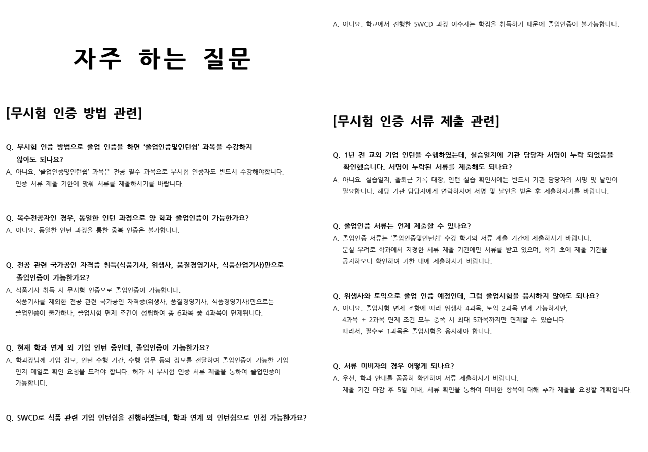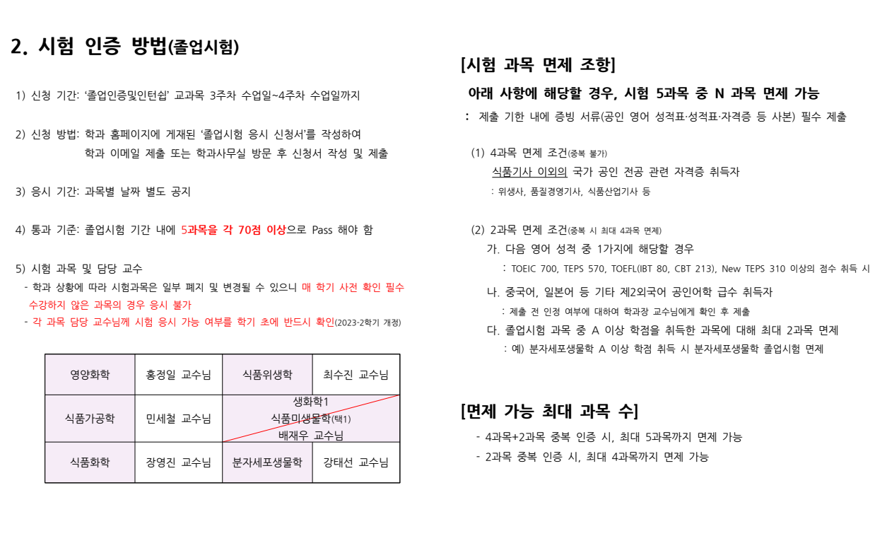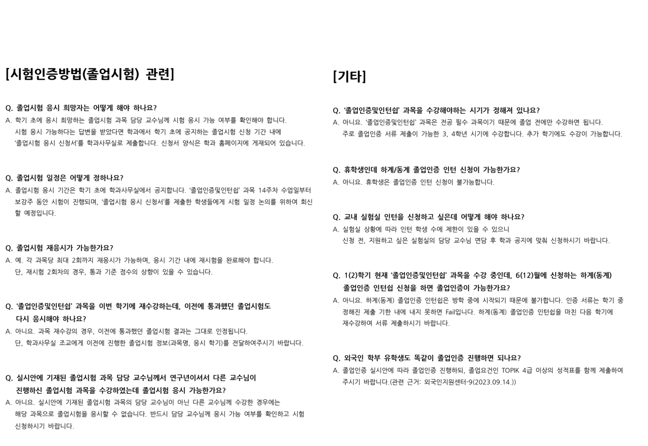 ※ 졸업시험 응시 방법이 일부 변경되었으니 참고하시기 바랍니다. '졸업인증및인턴쉽' 수강 학기에 반드시 확인하여 졸업인증을 진행하시기 바랍니다.