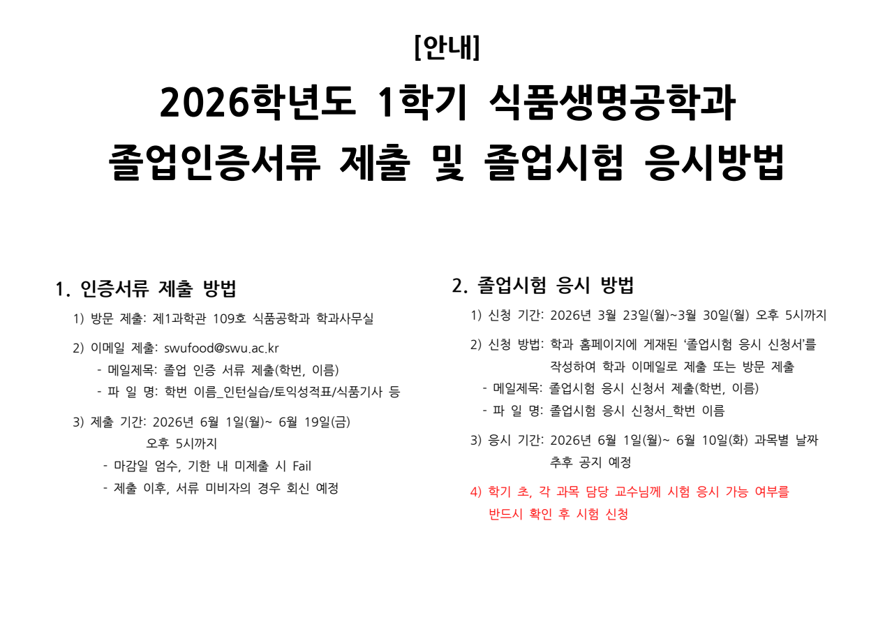 ※ 2026년은 배재우 교수님의 연구년으로, 교수님께서 담당하시는 과목의 졸업시험 응시는 불가함을