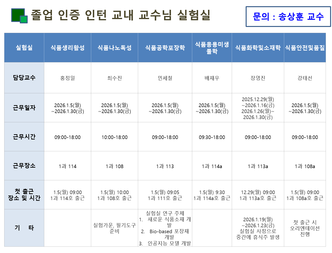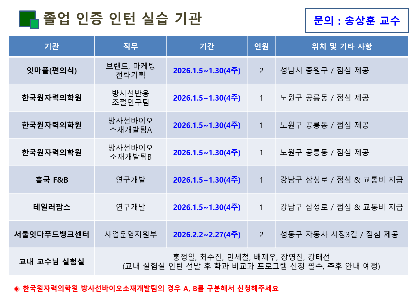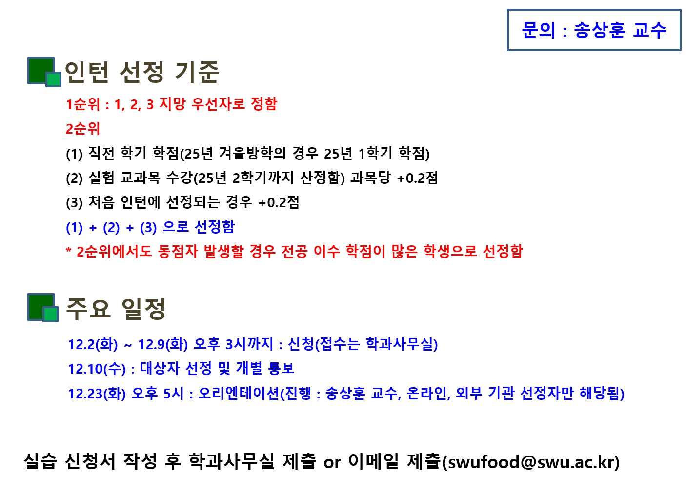 3. 문의: 식품공학과 학과사무실(02-970-5631, swufood@swu.ac.kr)