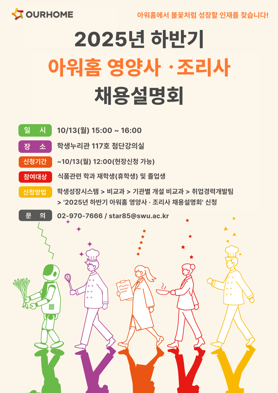 [홍보]2025년 하반기 아워홈 영양사·조리사 채용 설명회(10/13)